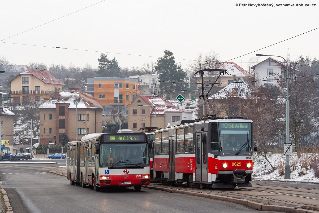 Fotografie Irisbus Citybus 18M 2081.40 6552/II (4A3 2988) Dopravní podnik hl. m. Prahy | ČKD DS T6A5 8625 Dopravní podnik hl. m. Prahy | Praha-Řepy, Makovského | seznam-autobusu.cz